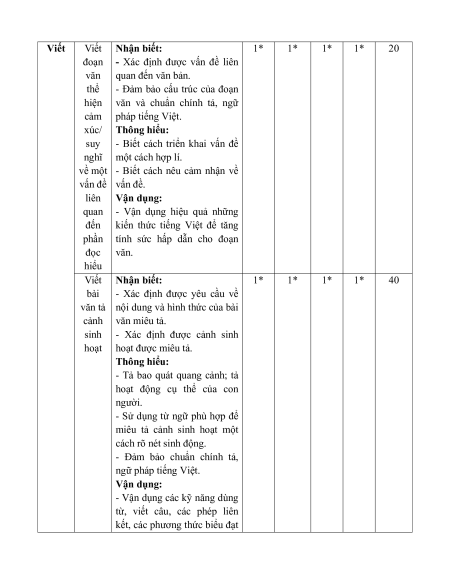 - Rút ra được thông điệp, bài học cho bản thân. Viết Viết Nhận biết: 1* 1* 1* 1* 20