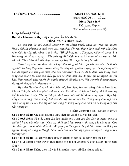 Bộ 20 đề thi cuối kì 2 Ngữ văn 6 Cánh diều Cấu trúc mới