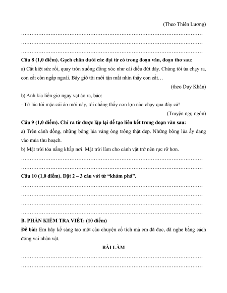 B. PHẦN KIỂM TRA VIẾT: (10 điểm)