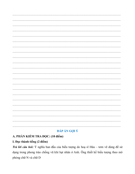 A. PHẦN KIỂM TRA ĐỌC: (10 điểm)