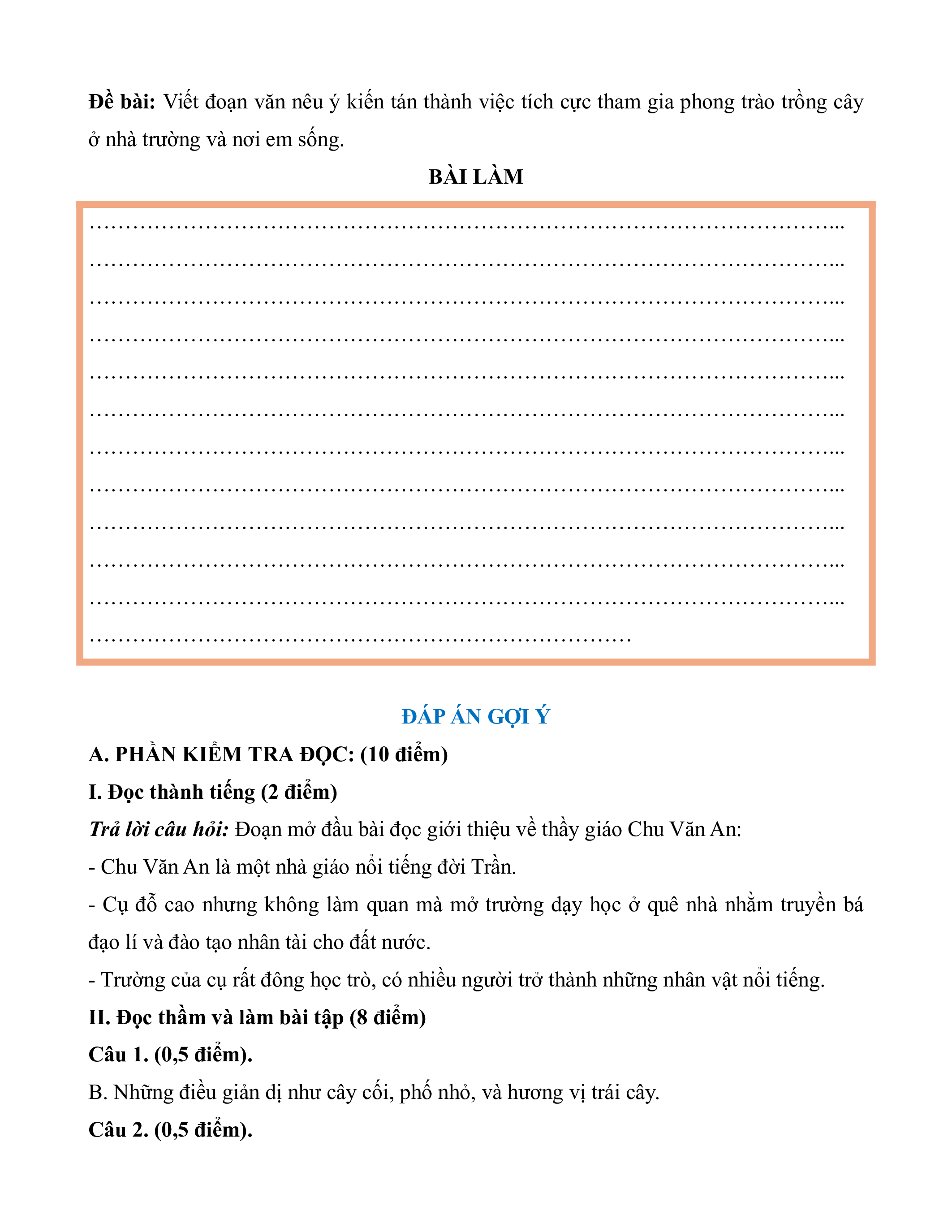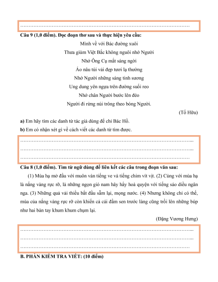 B. PHẦN KIỂM TRA VIẾT: (10 điểm)
