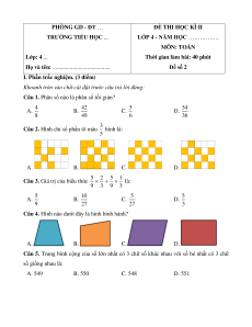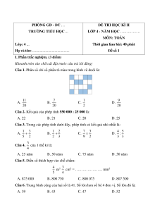 LỚP 4 - NĂM HỌC ……………. MÔN: TOÁN Lớp: 4 ...