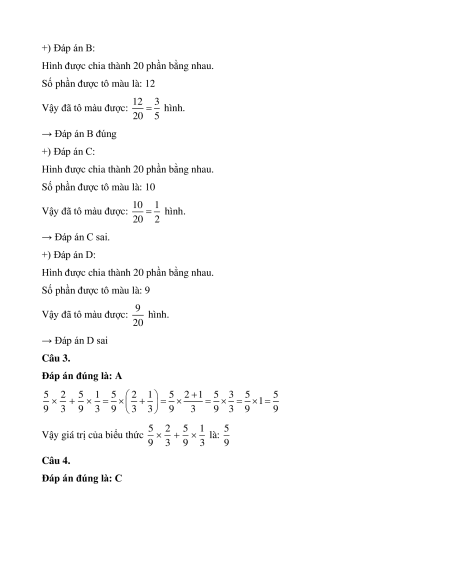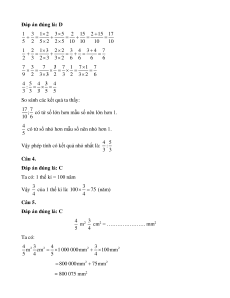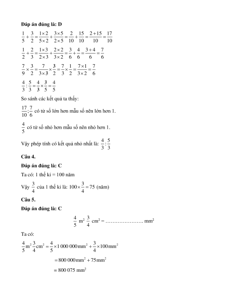 Câu 3. Trong các phép tính dưới đây, phép tính có kết quả nhỏ nhất là: 1 3 1 2 7 3 4 5 A. + B. + C. D. : 5 2 2 3 9 2 3 3 3