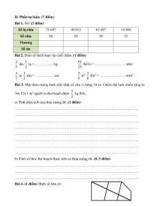 Đại lượng và đo Số câu 1 1 1 2 1 các đại lượng: Đơn vị đo diện tích, đo thờ Số 0,5 0,5 1 1 1 i điể gian, đo khố m i lượng. Hình học: Góc Số câu 1 1 nhọn, góc tù, Số 1 1 góc bẹt. Hai điểm đường thẳng vuông góc, hai đường thẳng song song. Hình thoi, hình bình hành. Một số yếu tố Số câu thống kê và xác suất: Dãy số Số liệu thống kê. điểm Biểu đồ cột. Số lần xuất hiện của một sự kiện. Tổng Số 4 1 2 3 1 6 5 câu Số 2 2 1 4,5 0,5 3 7 điểm