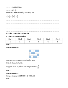 Câu 1. Phân số chỉ số phần tô màu trong hình vẽ dưới là: 11 7 1 9 A. B. C. D. 20 20 2 20