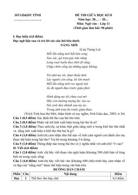 Viết bài văn nghị luận về một tác phẩm thơ 1* 1* 1* 1* 40