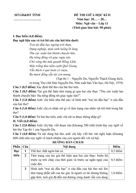 - Tailieugiaovien.com.vn giới thiệu bộ 20 đề giữa kì 2 gồm đầy đủ ma trận và lời giải chi tiết Ngữ văn 11 Chân trời sáng tạo Cấu trúc mới nhằm giúp Giáo viên có thêm tài liệu tham khảo ra đề thi Ngữ văn lớp 11.