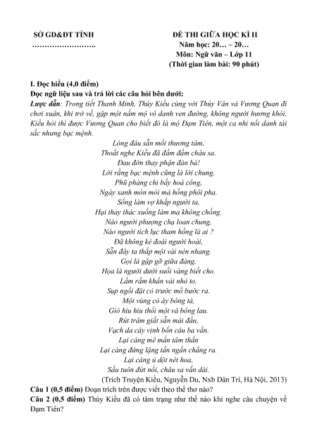 - Tailieugiaovien.com.vn giới thiệu bộ 20 đề giữa kì 2 gồm đầy đủ ma trận và lời giải chi tiết môn Ngữ văn 11 Kết nối tri thức Cấu trúc mới nhằm giúp Giáo viên có thêm tài liệu tham khảo ra đề thi Ngữ văn lớp 11.