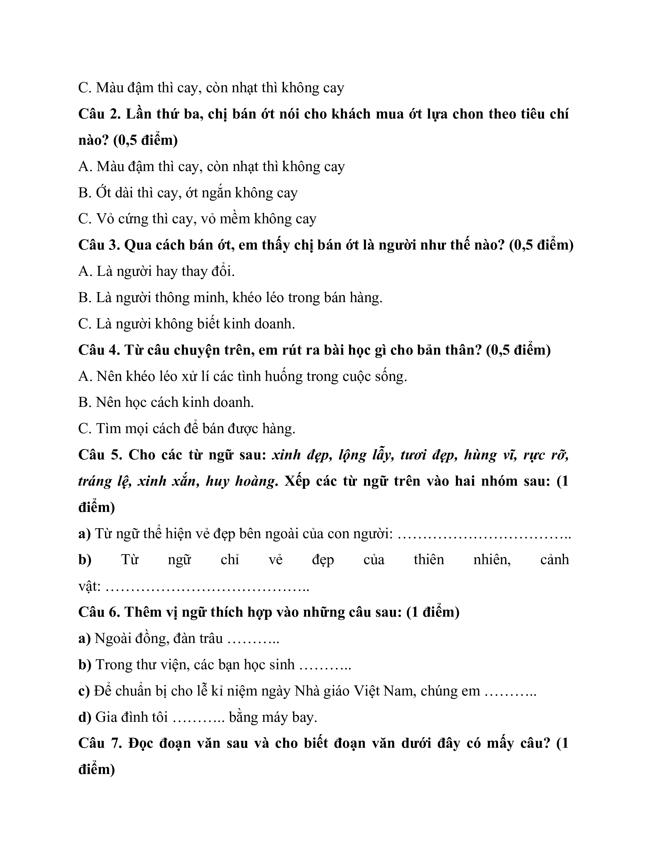 Câu 3. Qua cách bán ớt, em thấy chị bán ớt là người như thế nào? (0,5 điểm)