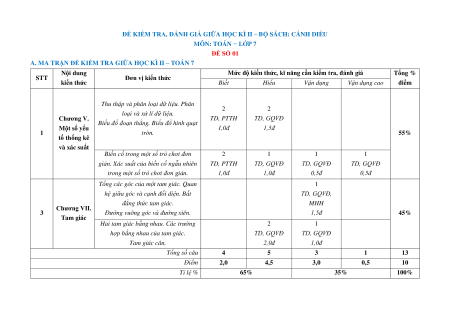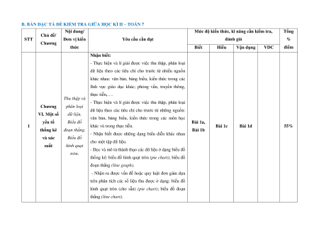 B. BẢN ĐẶC TẢ ĐỀ KIỂM TRA GIỮA HỌC KÌ II – TOÁN 7 Nội dung/