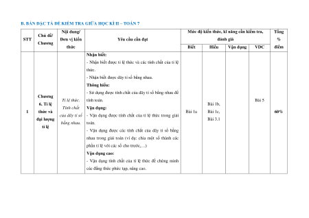 B. BẢN ĐẶC TẢ ĐỀ KIỂM TRA GIỮA HỌC KÌ II – TOÁN 7 Nội dung/