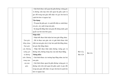 - Nhận biết được khái niệm: đường vuông góc và 3 của một tam Bài 4.1 40% giác đường xiên. giác