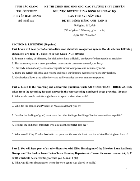 ĐỀ THI MÔN: TIẾNG ANH - LỚP 11 Thời gian: 180 phút