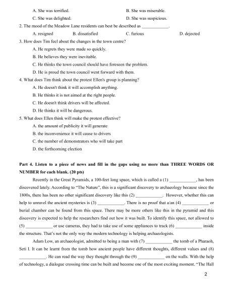 Part 4. Listen to a piece of news and fil in the gaps using no more than THREE WORDS OR