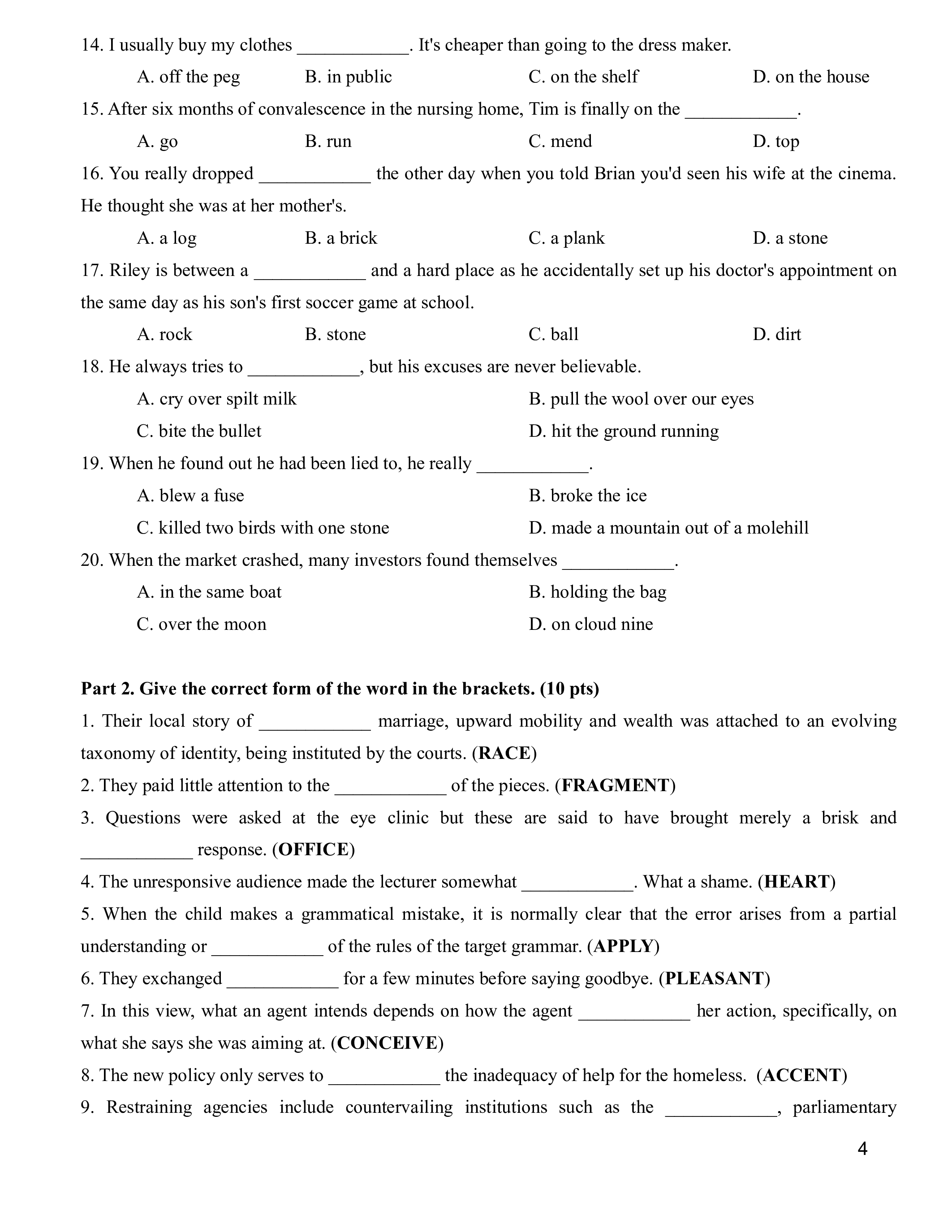 SECTION 2: LEXICO-GRAMMAR (30 points)