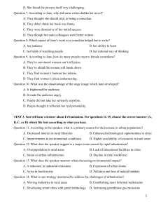 TEST 3. You will hear a lecture about Urbanization. For questions 11-15, choose the correct answer (A,
