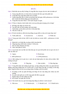 Câu 5. Loại enzim nào sau đây trực tiếp tham gia vào quá trình phiên mã các gen cấu trúc ở sinh vật nhân sơ? A. Ligaza. B. Restrictaza. C. ARN polimeraza. D. AND polimeraza.