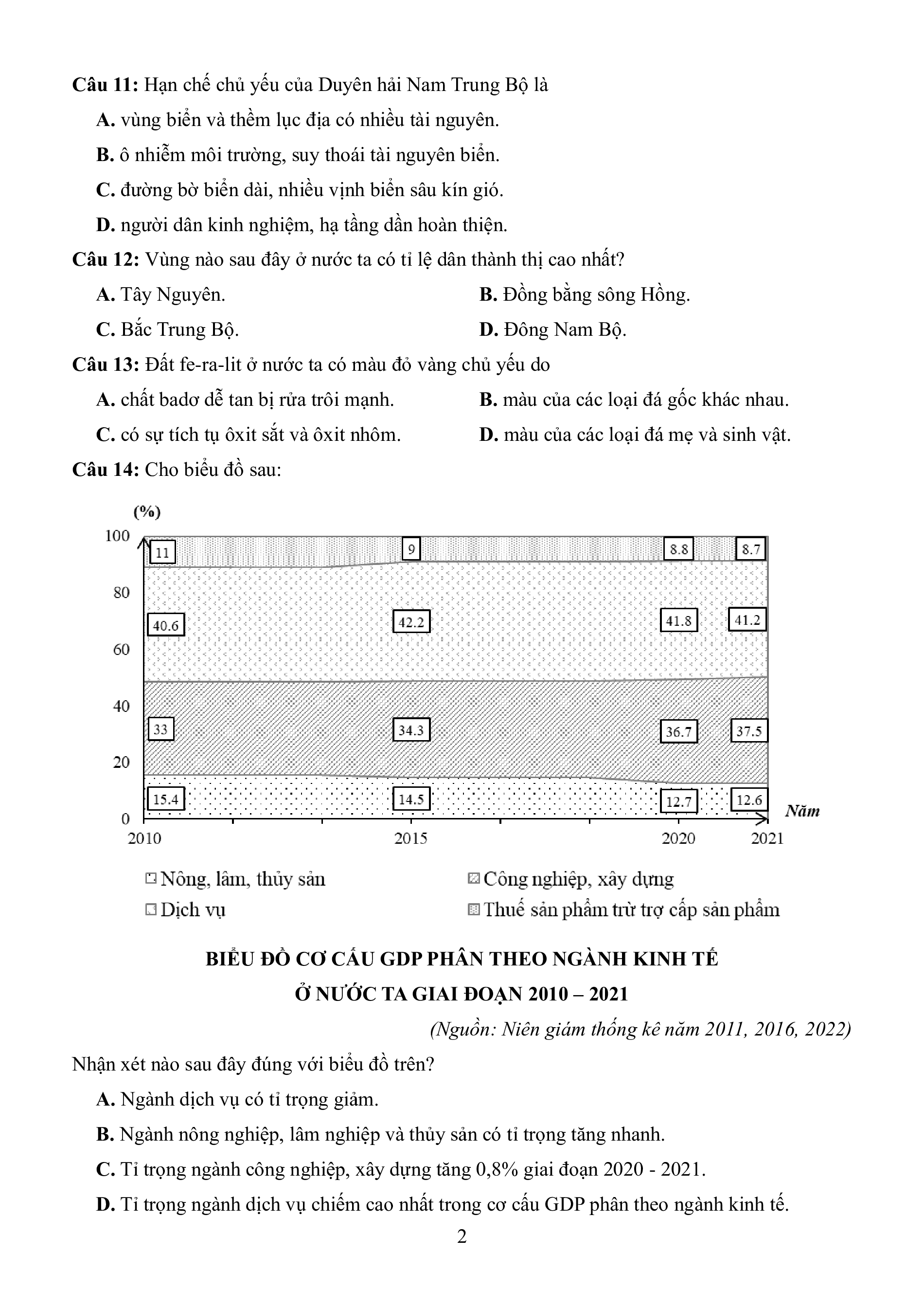 D. Tỉ trọng ngành dịch vụ chiếm cao nhất trong cơ cấu GDP phân theo ngành kinh tế. 2