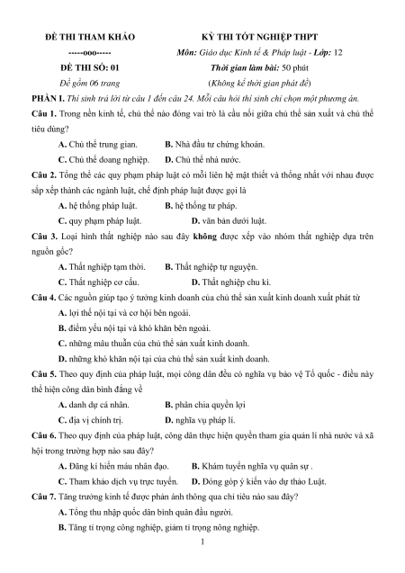 Môn: Giáo dục Kinh tế & Pháp luật - Lớp: 12