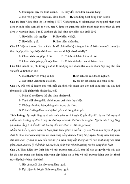 Câu 16. Bạn K học sinh lớp 12 trường THPT X không may bị tai nạn giao thông phải nhập viện
