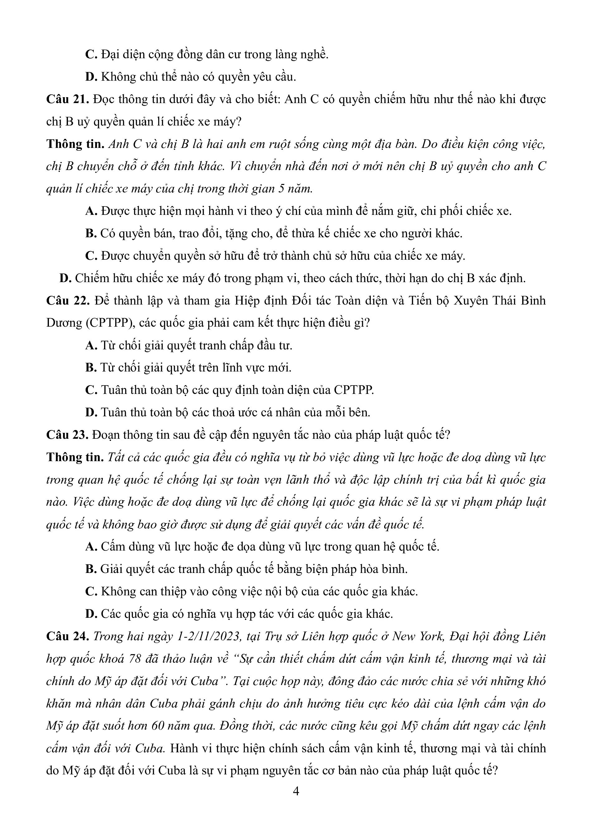 Câu 23. Đoạn thông tin sau đề cập đến nguyên tắc nào của pháp luật quốc tế?