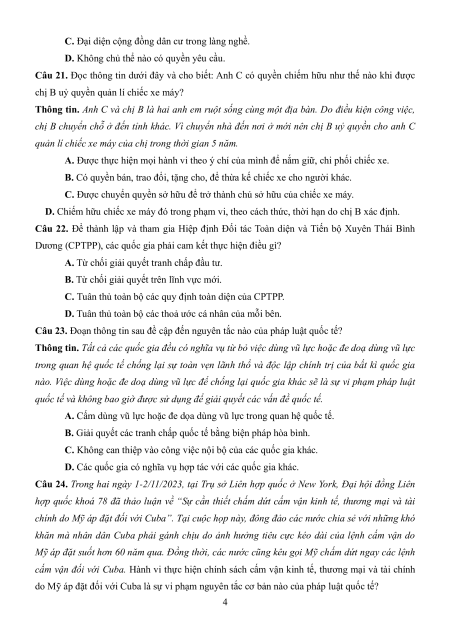 Câu 21. Đọc thông tin dưới đây và cho biết: Anh C có quyền chiếm hữu như thế nào khi được