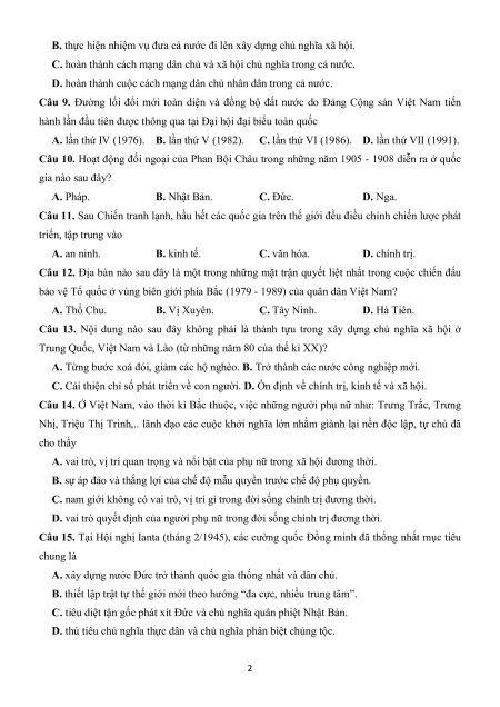 Câu 9. Đường lối đổi mới toàn diện và đồng bộ đất nước do Đảng Cộng sản Việt Nam tiến