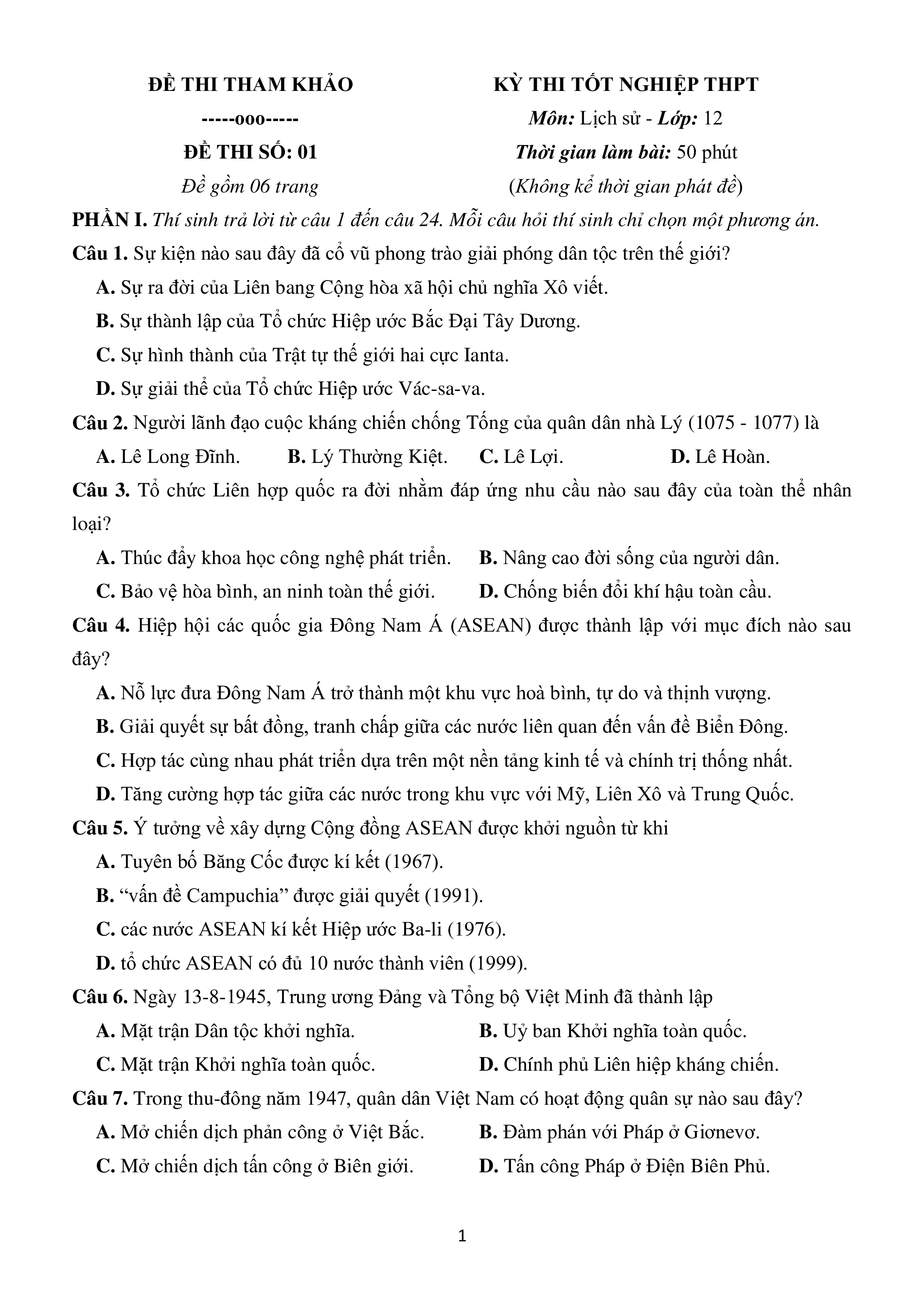 Bộ 20 Đề thi tốt nghiệp Lịch sử 2026 (form mới)