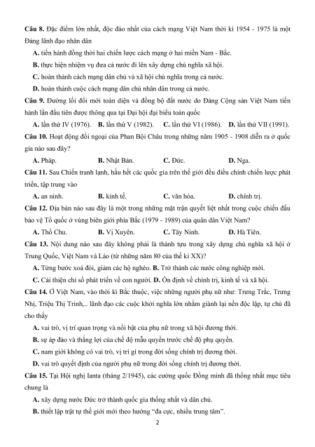 Câu 8. Đặc điểm lớn nhất, độc đáo nhất của cách mạng Việt Nam thời kì 1954 - 1975 là một