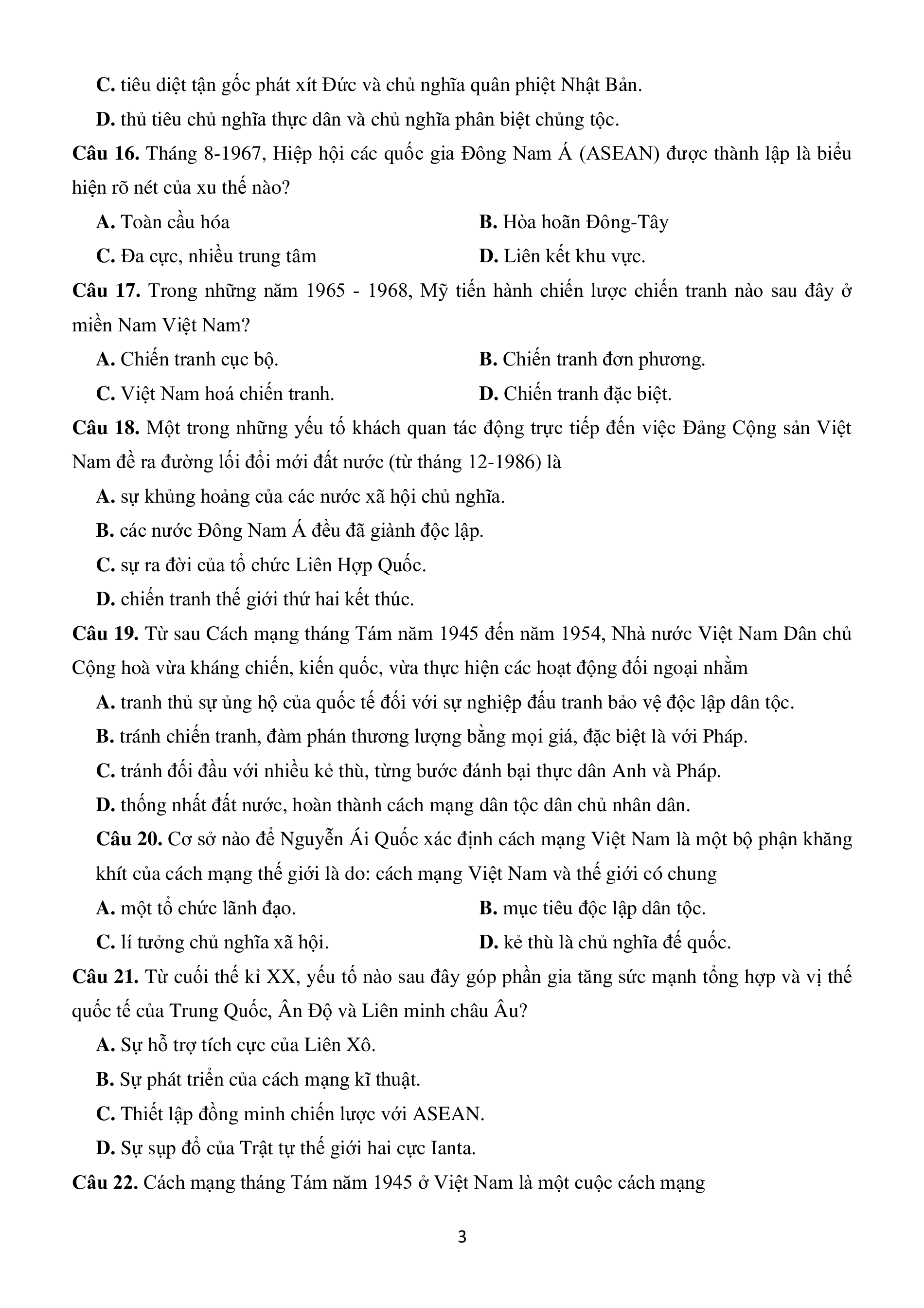 Câu 22. Cách mạng tháng Tám năm 1945 ở Việt Nam là một cuộc cách mạng 3