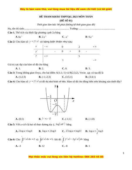 ĐỀ THAM KHẢO THPTQG 2023 MÔN TOÁN (ĐỀ SỐ 01)