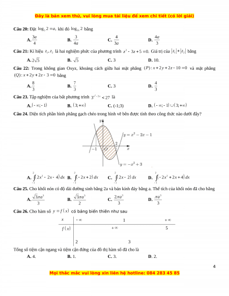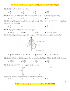 Câu 20: Đặt khi đó bằng A. B. C. D. Câu 21: Kí hiệu