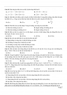 Câu 9. Số proton có trong hạt nhân là A. 210 B. 84 C. 126 D. 294 Trang 1