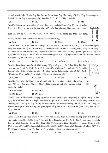 Câu 29. Hai con lắc lò xo giống hết nhau được treo vào hai điểm ở cùng độ cao, cách nhau