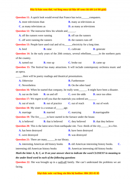Chúng tôi đảm bảo đủ số lượng đề đã cam kết hoặc có thể nhiều hơn, tất cả có BẢN WORD, LỜI GIẢI CHI TIẾT và tải về dễ dàng.