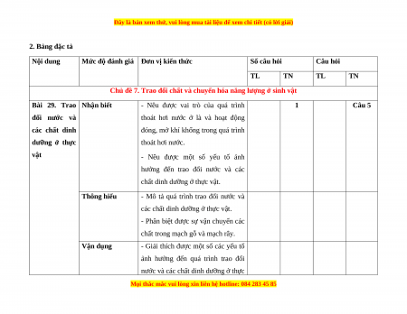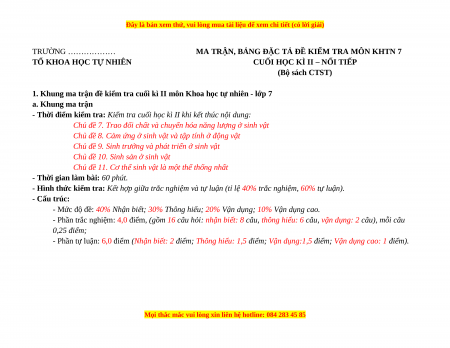 1. Khung ma trận đề kiểm tra cuối kì II môn Khoa học tự nhiên - lớp 7