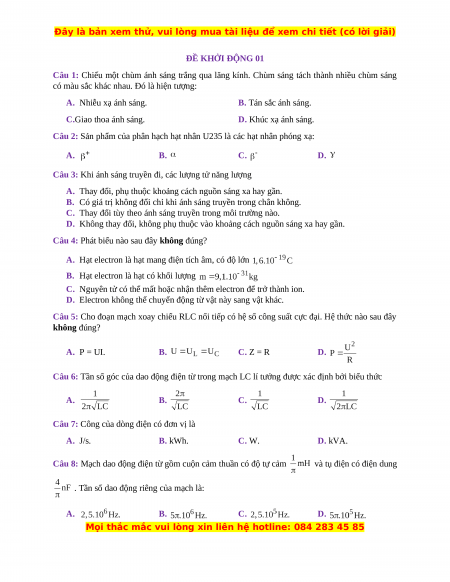 Chúng tôi đảm bảo đủ số lượng đề đã cam kết hoặc có thể nhiều hơn, tất cả có BẢN WORD, LỜI GIẢI CHI TIẾT và tải về dễ dàng.