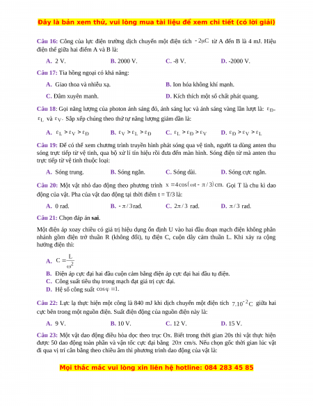 - Bộ 21 đề thi THPT Quốc gia môn Vật lí năm 2022-2023 có lời giải chi tiết được thầy Đặng Việt Hùng biên soạn công phu bám sát đề thi minh họa của Bộ GD&ĐT.