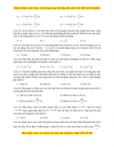 Câu 26: Hiệu điện thế giữa hai anôt và catôt của một ống tia Rơnghen là 200 kV. Bước sóng