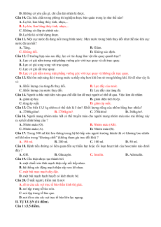 Câu 17. Trong 500 ml khí lưu thông trong hệ hô hấp của người trưởng thành thì có khoảng bao nhiêu