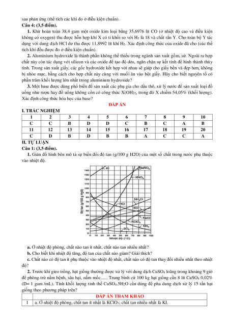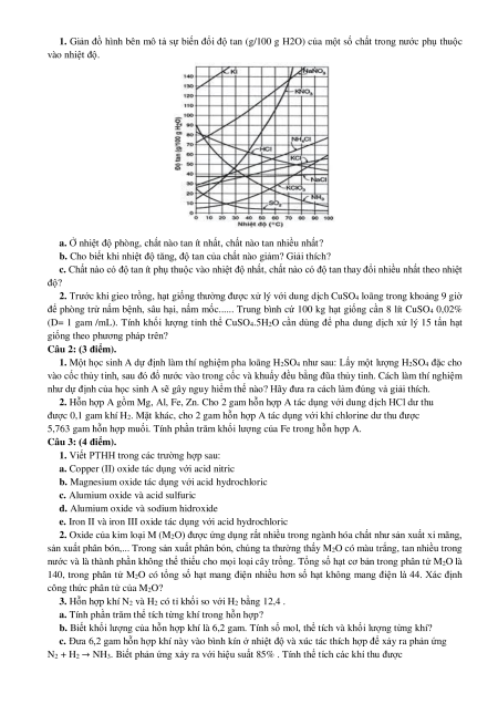 1. Giản đồ hình bên mô tả sự biến đổi độ tan (g/100 g H2O) của một số chất trong nước phụ thuộc vào nhiệt độ.