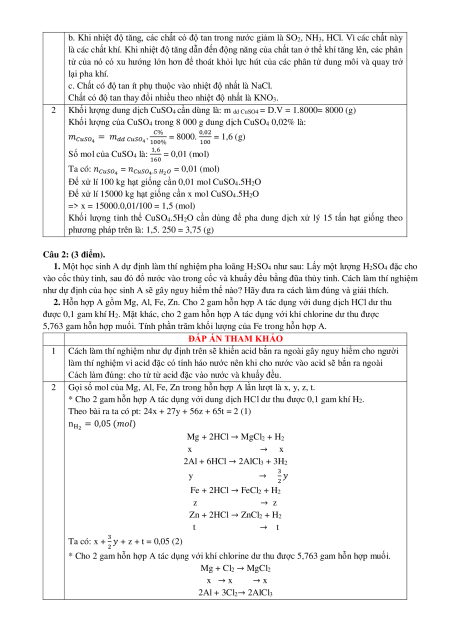 1. Một học sinh A dự định làm thí nghiệm pha loãng H2SO4 như sau: Lấy một lượng H2SO4 đặc cho