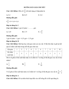 Câu 3 (0,5 điểm): Một bạn học sinh gieo một con xúc xắc 10 lần liên tiếp và ghi lại kết