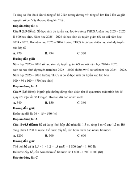 2024 - 2025. Hỏi năm học 2025 – 2026 trường THCS A có bao nhiêu học sinh dự tuyển vào lớp 6? A. 470 B. 494 C. 530