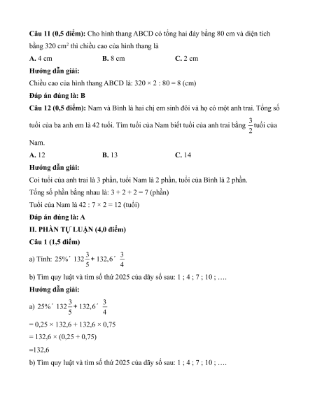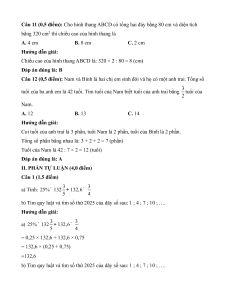 Câu 11 (0,5 điểm): Cho hình thang ABCD có tổng hai đáy bằng 80 cm và diện tích