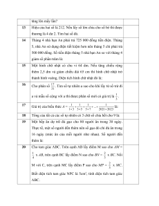 Thời gian làm bài: 45 phút STT Câu hỏi Đáp số 1