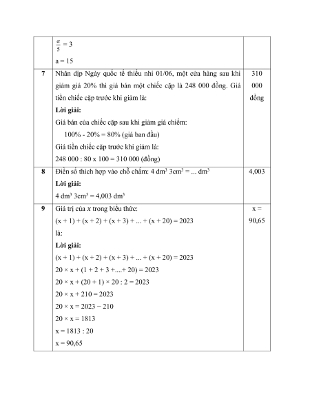 248 000 : 80 x 100 = 310 000 (đồng) 8
