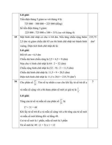 500 000 đồng. Số tiền điện tháng 5 nhà bạn An so với tháng 4 giảm số phần trăm là: 15