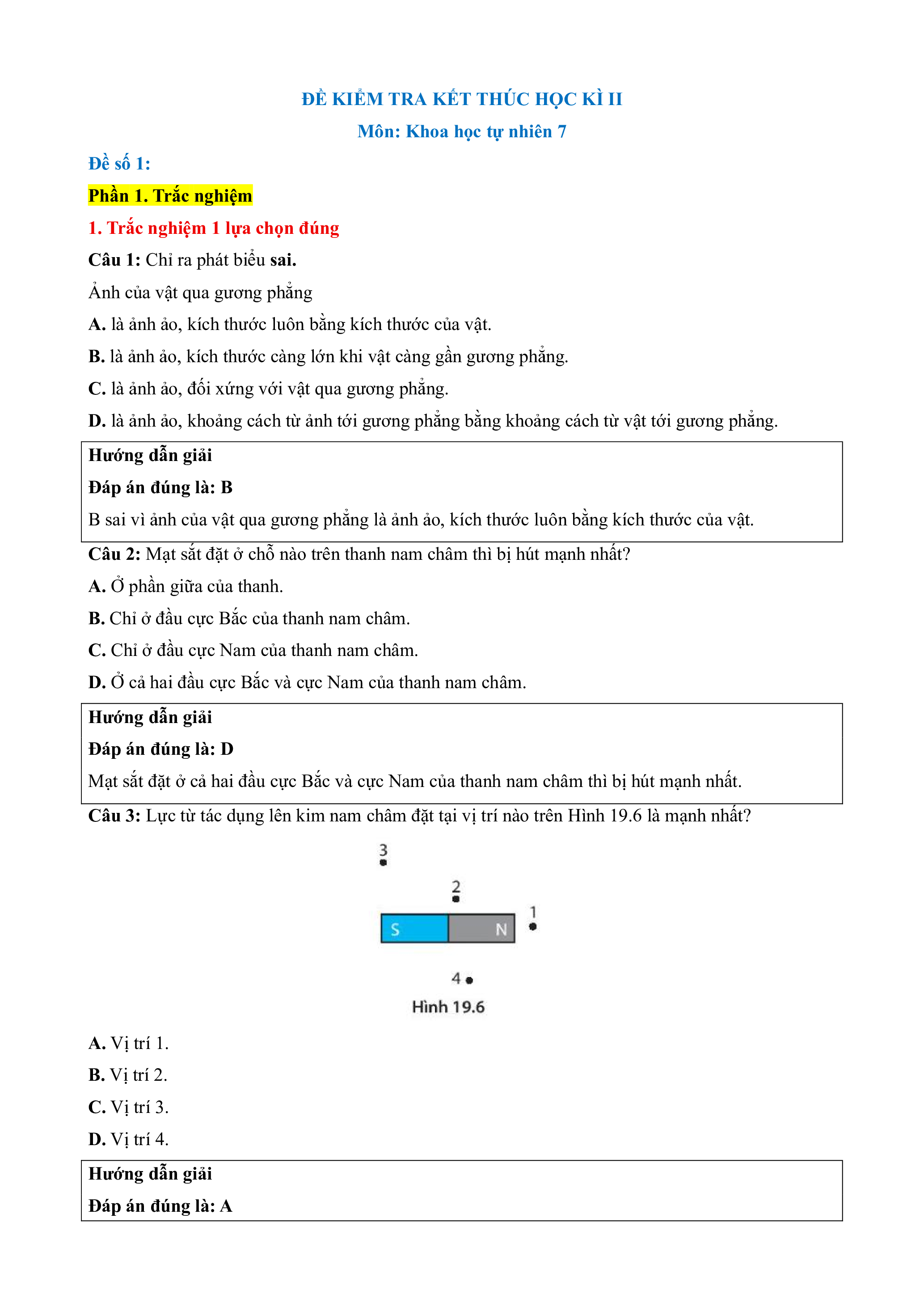 Môn: Khoa học tự nhiên 7 Đề số 1: Phần 1. Trắc nghiệm