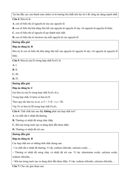 Tại hai đầu cực của thanh nam châm có từ trường lớn nhất nên lực từ ở đó cũng tác dụng mạnh nhất. Câu 4: Hóa trị là